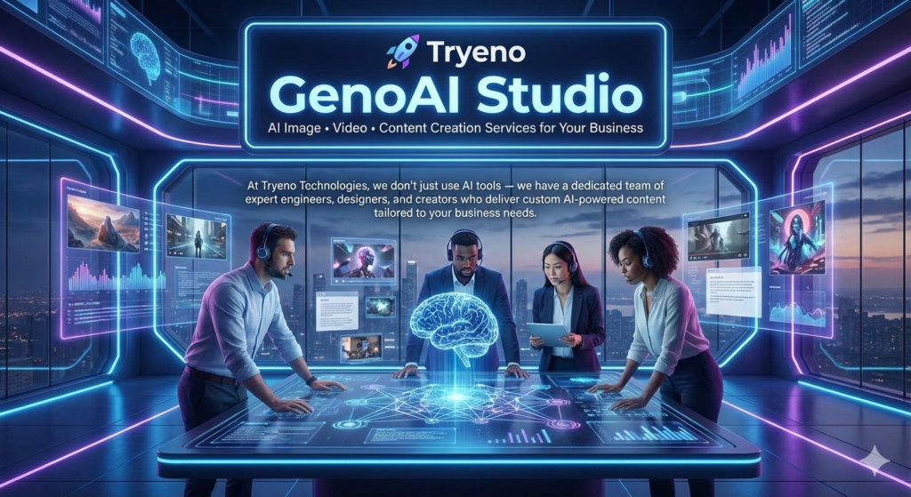 At Tryeno Technologies, we don’t just use AI tools — we have a dedicated team of expert engineers, designers, and creators who deliver custom AI-powered content tailored to your business needs.